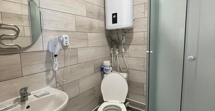В номерах: широкие кровати, прикроватные тумбочки, стол, стулья, диван, кресло, журнальный столик с чайником , шкаф, телевизор, санузел с душем, Wi-FI.
