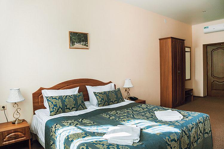 Номера меблированы с большим вниманием к комфорту гостей, которые могут выбрать комнату с двумя односпальными или одной двуспальной кроватью. В номере формата «улучшенный стандарт» дополнительно размещён красивый стильный диван. Комнаты для гостей обставлены удобной новой мебелью и оснащены необходимой техникой: телевизором, кондиционером, холодильником.